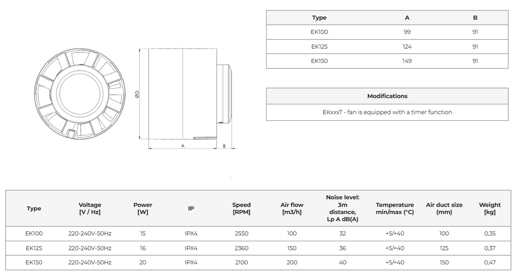 - EK100T / EK125T / EK150T – Med inbyggd timer