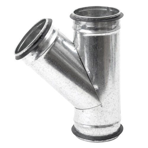 T-rör 45° i galvaniserat stål med EPDM-packningar för ventilationskanaler och spirorör. Ger en tät och stabil förgrening med enkel installation och finns i flera dimensioner för både tilluft och frånluft.