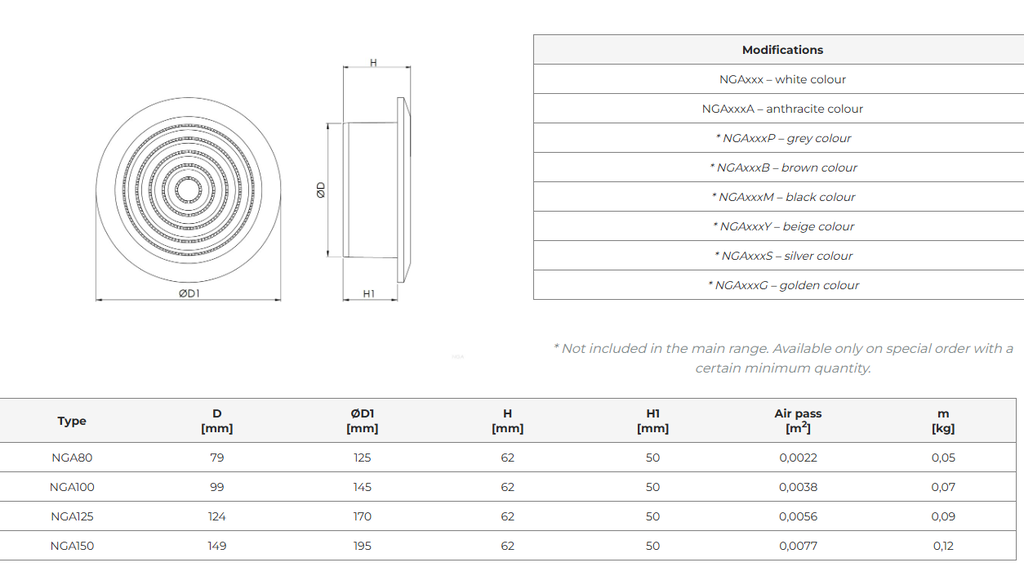 Gallren i NGA-serien lämpar sig för takventilation i bostäder, kontor, förråd och andra utrymmen där ventilation krävs. De är perfekta i kombination med FTX-system, kanalfläktar eller naturlig ventilation, och erbjuder ett diskret men funktionellt luftflöde.