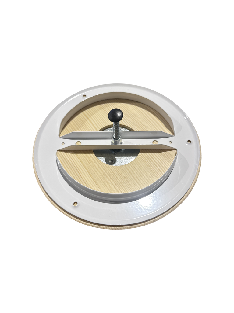 Träventil med manuell justering för till- och frånluft. Perfekt för bastu eller andra utrymmen. Diskret design i al eller furu med vit kropp, i flera storlekar.