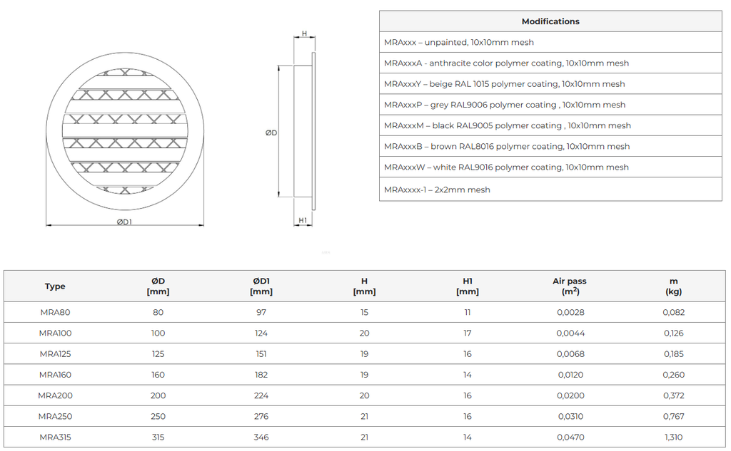 Metallgaller i högkvalitativ aluminium från Europlast för ventilation, med metallnät och skruvinfästningar, för inom- och utomhusbruk. Finns i flera färger, diameter Ø100 mm, ytterdiameter 125 mm och höjd 20 mm, hållbart och stilrent.