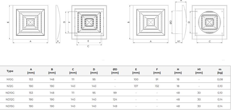| ND10G | 148x153 mm | Ø100 mm | Insektsnät | 4750492218471 |