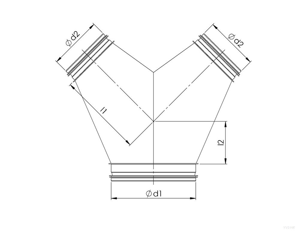 YVS-serien finns i flera dimensioner med en huvuddiameter (Ød1) och två sidogrenar (Ød2). Välj den storlek som passar din kanaldragning och luftmängd. Vanliga söktermer är Y-rör ventilation, Y-stycke spirorör, ventilationsrör Y-skarv, kanal Y-stycke 45 grader och Y-rör med packning.